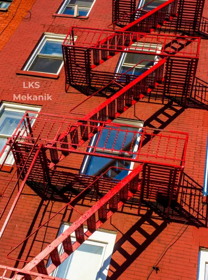 Yangın kapısı güvenlik nedeniyle binayı terk etmek zorunda kalan herkesin sağlıklı şekilde zemine ulaşmalarını sağlayan..